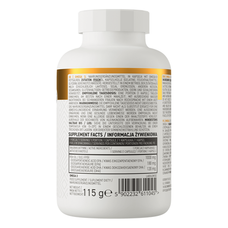 - Source d'acides gras polyinsaturés oméga 3 - une capsule contient 1000 mg d'huile de poisson.