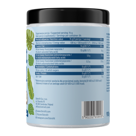 L'huile de coco OstroVit est une huile de coco 100% naturelle et raffinée qui ne contient pas de sel ajouté, de sucre ou d'autres substances de remplissage inutiles, ce qui en fait un complément précieux à votre régime alimentaire quotidien.