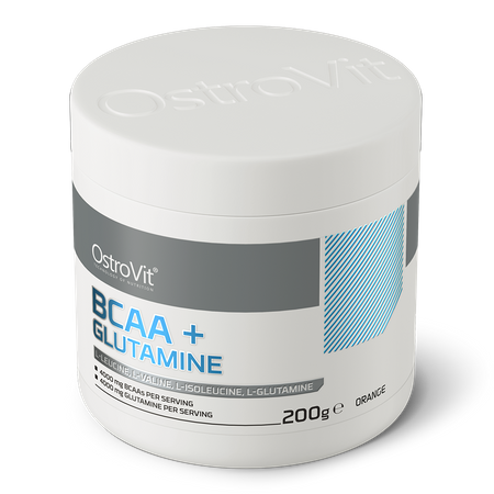 OstroVit BCAA + Glutamine est un complément alimentaire de haute qualité qui fournit une source de L-glutamine et d'acides aminés ramifiés L-leucine, L-isoleucine et L-valine. Il s'agit d'une préparation au goût rafraîchissant d'orange, disponible sous forme de poudre pratique. Il s'agit d'un produit conçu pour les athlètes et les personnes physiquement actives qui souhaitent compléter leur alimentation quotidienne avec des acides aminés précieux.