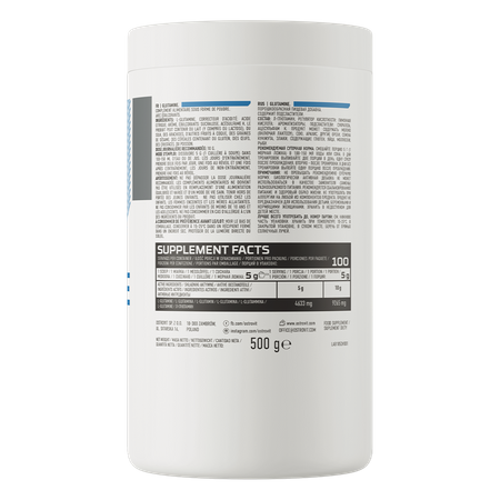 OstroVit Glutamine est un complément alimentaire de haute qualité qui fournit une source de L-glutamine. Il s'agit d'un arôme d'orange juteuse, sans sucre ajouté, disponible sous forme de poudre pratique. Il s'agit d'un produit conçu pour les athlètes et les personnes qui souhaitent compléter leur alimentation avec le précieux composé.