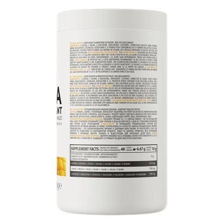 - Source d'acides aminés à chaîne ramifiée BCAA dans un rapport 2:1:1 - une portion du complément alimentaire apporte à l'organisme 4403 mg de L-leucine ainsi que 2342 mg de L-isoleucine et 2342 mg de L-valine.