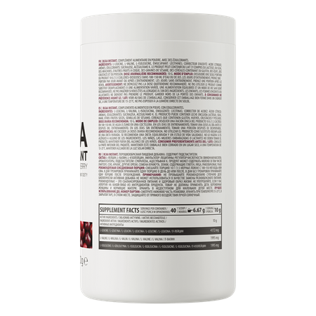 - Source d'acides aminés à chaîne ramifiée BCAA dans un rapport 2:1:1 - une portion du complément alimentaire apporte à l'organisme 4361 mg de L-leucine ainsi que 2320 mg de L-isoleucine et 2320 mg de L-valine.