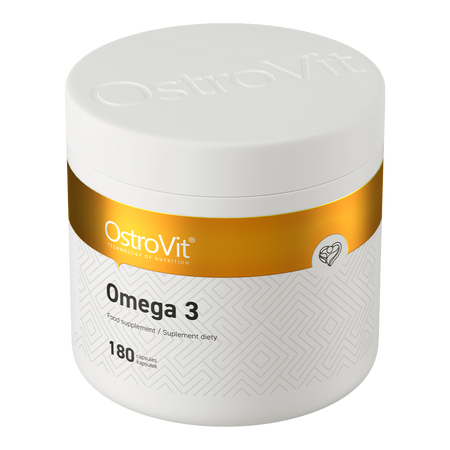 OstroVit Omega 3 est un complément alimentaire de haute qualité à base d'huile de poisson, source d'acides gras polyinsaturés oméga-3. La formule contient des composés précieux tels que l'acide eicosapentaénoïque (EPA) et l'acide docosahexaénoïque (DHA) et est disponible sous forme de capsules molles faciles à avaler.