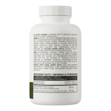 - Contient un extrait de la plante entière de bacopa standardisé à 50% de bacosides - une portion du complément alimentaire apporte à l'organisme 200 mg de l'extrait.