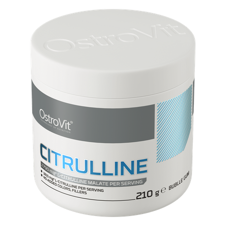OstroVit Citrulline est un complément alimentaire de haute qualité qui contient du malate de citrulline. Il s'agit d'un produit au délicieux goût de chewing-gum, disponible sous forme de poudre pratique sans sucre ajouté. Il s'agit d'un produit conçu pour les athlètes et les personnes physiquement actives qui souhaitent compléter leur alimentation avec des composés précieux.