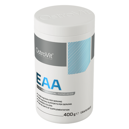 OstroVit EAA est un complément alimentaire de haute qualité qui contient des acides aminés essentiels, ainsi que de la L-glutamine, de la L-tyrosine et de la L-cystéine. Il s'agit d'une préparation au goût délicieux de pamplemousse rafraîchissant, disponible sous forme de poudre pratique. Il s'agit d'un produit conçu pour les athlètes et les personnes qui souhaitent compléter leur alimentation quotidienne avec des composés précieux.