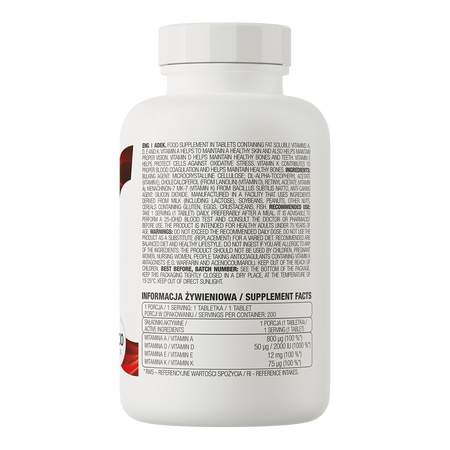 OstroVit ADEK est un complément alimentaire qui est une source de vitamines liposolubles telles que la vitamine A, la vitamine D et la vitamine E ou K. Il s'agit d'une préparation complète et de haute qualité qui constitue un complément précieux au régime alimentaire.