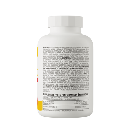OstroVit Vitamine C est un complément alimentaire qui fournit une source précieuse d'acide L-ascorbique. Il s'agit d'une préparation disponible sous forme de comprimés faciles à avaler, qui a été développée pour les athlètes et les personnes ayant un besoin accru de vitamine C.