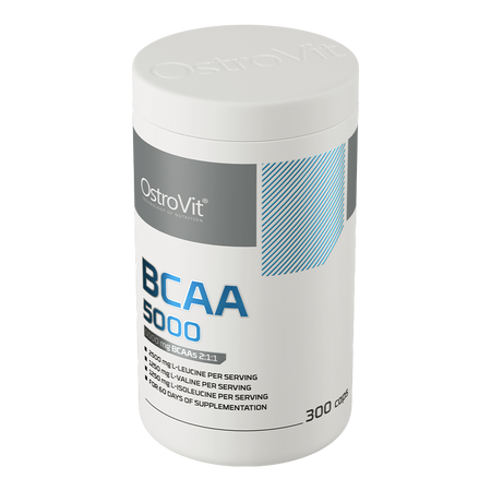 OstroVit BCAA capsules 5000 mg est un complément alimentaire de haute qualité qui fournit une source d'acides aminés ramifiés - L-leucine, L-isoleucine et L-valine. Il s'agit d'un produit à la formulation simple, disponible sous forme de gélules faciles à avaler. Il s'agit d'un produit conçu pour les athlètes et les personnes physiquement actives qui souhaitent compléter leur alimentation quotidienne avec des acides aminés précieux.