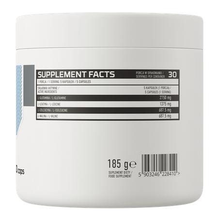 - Source d'acides aminés à chaîne ramifiée BCAA dans un rapport 2:1:1 - une portion du complément alimentaire apporte à l'organisme 1 375 mg de L-leucine, 687,5 mg de L-isoleucine et 687,5 mg de L-valine.