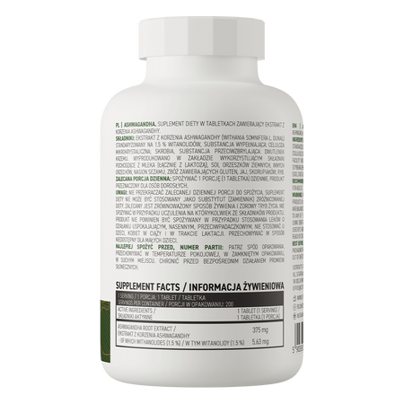 - Contient de l'extrait de racine d'ashwagandha standardisé à 1,5% de vitanolides - une portion du complément alimentaire apporte à l'organisme 375 mg de l'extrait.