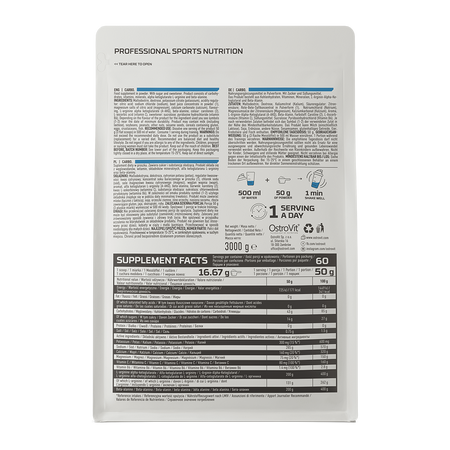 OstroVit Carbo est un supplément d'hydrates de carbone de haute qualité qui est également une source de L-arginine alpha-cétoglutarate, de bêta-alanine, ainsi que de vitamines et de minéraux. Il s'agit d'un complément en poudre, disponible en plusieurs saveurs, conçu pour les athlètes et les personnes physiquement actives qui ont besoin de fournir à leur corps des composés précieux pendant la période post-entraînement.