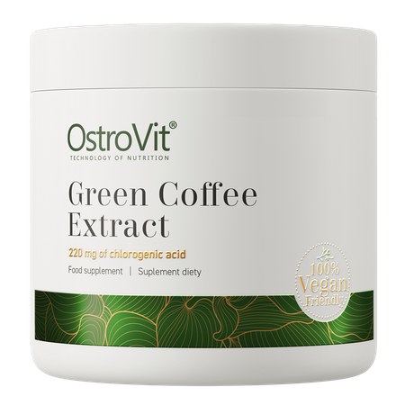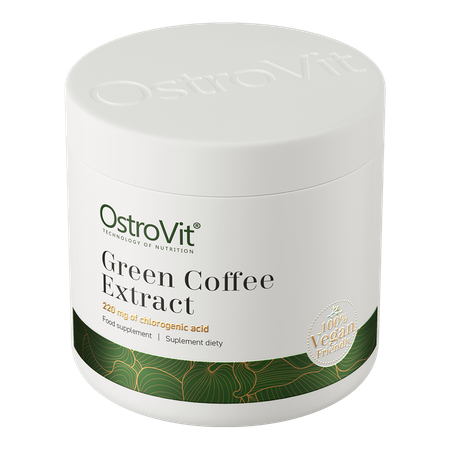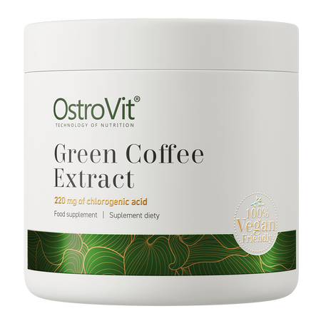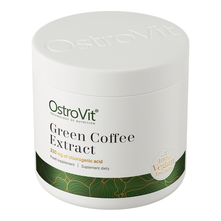 OstroVit Green Coffee Extract est un complément alimentaire de haute qualité qui contient de l'extrait de grains de café vert standardisé à 50% d'acide chlorogénique et 5% de caféine. Il s'agit d'une préparation végétalienne, disponible sous forme de poudre pratique. Il s'agit d'un produit conçu pour les personnes qui souhaitent stimuler leur organisme et compléter leur alimentation quotidienne avec des ingrédients de valeur.