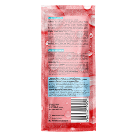 OstroVit Aqua Kick L-Carnitine est un complément alimentaire de haute qualité qui fournit une source de tartrate de L-carnitine et d'extrait de feuilles de thé vert. Il s'agit d'une préparation au délicieux goût de cerise, disponible sous forme de poudre soluble dans l'eau. Il s'agit d'un produit créé pour les consommateurs conscients qui souhaitent compléter leur alimentation quotidienne avec des ingrédients de valeur.