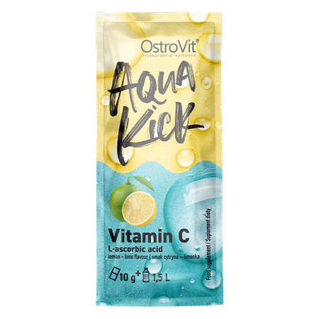 OstroVit Aqua Kick Vitamine C est un complément alimentaire de haute qualité qui fournit une source de vitamine C. Il s'agit d'une préparation au délicieux goût de citron vert, disponible sous forme de poudre soluble dans l'eau. Il s'agit d'un produit conçu pour les personnes qui souhaitent compléter leur alimentation quotidienne avec le précieux micronutriment.