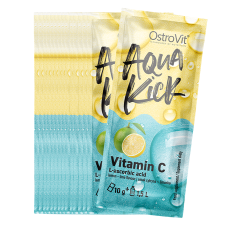 OstroVit Aqua Kick Vitamine C est un complément alimentaire de haute qualité qui fournit une source de vitamine C. Il s'agit d'une préparation au délicieux goût de citron vert, disponible sous forme de poudre soluble dans l'eau. Il s'agit d'un produit conçu pour les personnes qui souhaitent compléter leur alimentation quotidienne avec le précieux micronutriment.