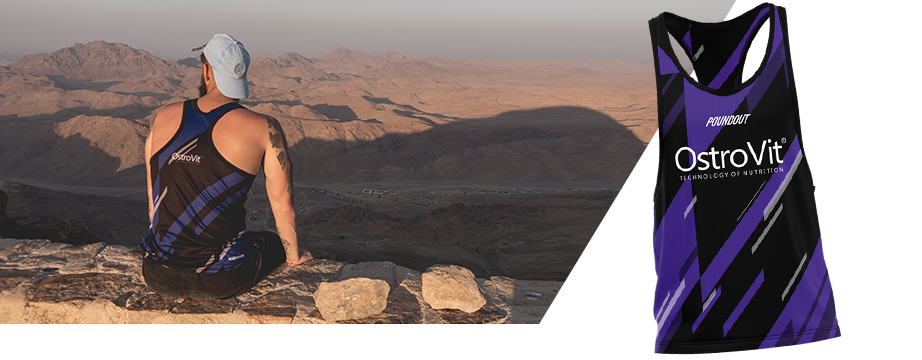 Ce débardeur pour homme en violet et noir avec le logo OstroVit est parfait pour le style de tous les jours ainsi que pour la salle de sport. Il est fabriqué dans une matière fine et infroissable, ce qui lui confère un aspect toujours impeccable. Le débardeur a une encolure large et des découpes profondes sur les épaules pour une liberté de mouvement totale. Le dos du T-shirt est uni, avec un petit logo de l'entreprise. Le débardeur est doté d'un fin liseré sur le bord supérieur. Cette coupe permet au produit de s'adapter parfaitement à toutes les morphologies.