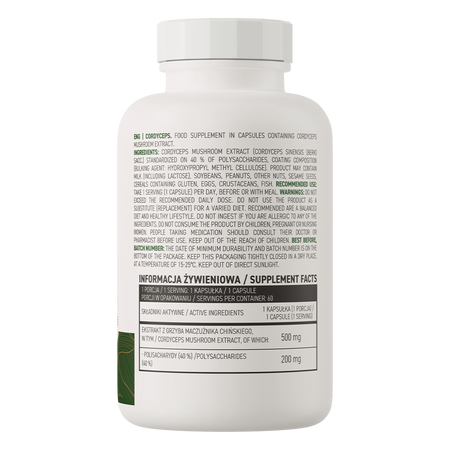 OstroVit Cordyceps Vege est un complément alimentaire de haute qualité qui contient un extrait du champignon chinois de la passion standardisé à 40% de polysaccharides DER 30:1. Il s'agit d'une préparation végétalienne, disponible sous forme de gélules faciles à avaler. Il s'agit d'un produit conçu pour les personnes qui souhaitent compléter leur alimentation quotidienne avec des ingrédients précieux et naturels.