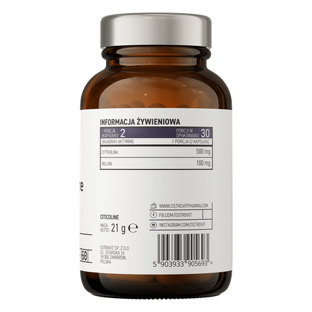 OstroVit Pharma Citicoline est un complément alimentaire de haute qualité qui fournit une source de citicoline et d'inuline. Un produit d'élite de la ligne OstroVit Pharma, disponible sous forme de gélules faciles à avaler, conçu pour les personnes qui souhaitent compléter leur alimentation quotidienne avec des ingrédients de valeur.