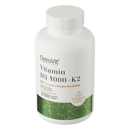 OstroVit Vitamine D3 4000 UI + K2 est un complément alimentaire de haute qualité qui est une source de vitamine D3 et de vitamine K2, sous forme de ménaquinone-7-MK-7, qui est la mieux absorbée par le corps humain. Une préparation végétalienne disponible sous forme de comprimés faciles à avaler, conçue pour les personnes qui souhaitent compléter leur alimentation quotidienne avec des micronutriments précieux.