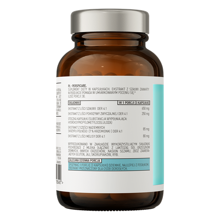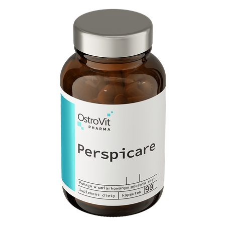 OstroVit Pharma Perspicare est un complément alimentaire complexe qui contient quatre extraits de plantes différents - extrait de feuilles de sauge, parties broyées de la prêle des champs, extrait de feuilles d'ortie et extrait de feuilles de mélisse. Il s'agit d'un produit de la gamme élite d'OstroVit Pharma, disponible sous forme de gélules faciles à avaler, conçu pour les consommateurs conscients qui luttent contre la transpiration excessive.