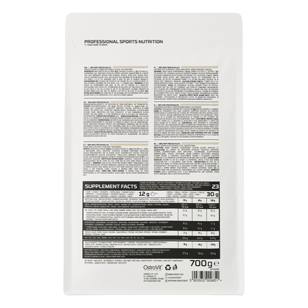 OstroVit 100% Isolat de lactosérum est un supplément de protéines qui contient de l'isolat de protéines de lactosérum. C'est une source de protéines qui contribue à la croissance musculaire et au maintien de la masse musculaire. En outre, les protéines contribuent à la santé des os, ce qui en fait un macronutriment précieux dans l'alimentation quotidienne.