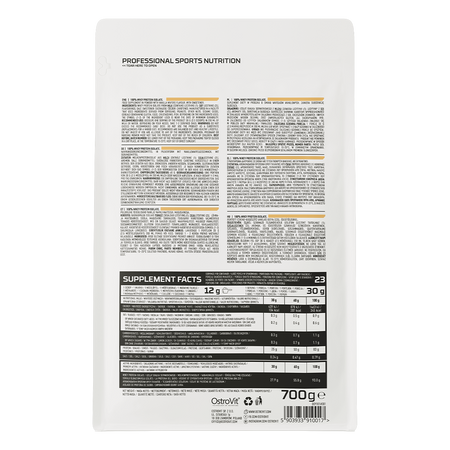 OstroVit 100% Isolat de lactosérum est un supplément de protéines qui contient de l'isolat de protéines de lactosérum. C'est une source de protéines qui contribue à la croissance musculaire et au maintien de la masse musculaire. En outre, les protéines contribuent à la santé des os, ce qui en fait un macronutriment précieux dans l'alimentation quotidienne.