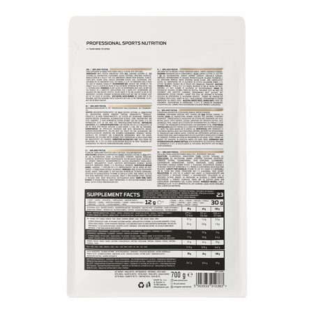 Complément alimentaire en poudre. Contient des édulcorants. Selon le type de lécithine utilisé, symbole 1-2.