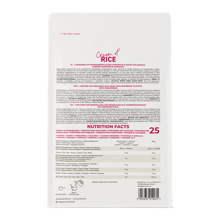 - Faible teneur en sucre - le produit ne contient pas de sucre ajouté et des édulcorants à faible teneur en sucre peuvent être trouvés parmi les ingrédients du gruau de riz, ce qui contribue à réduire la teneur en calories du mélange.