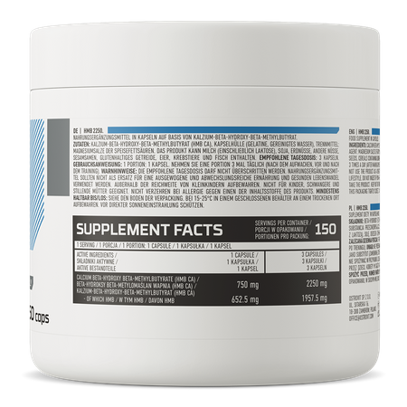 - Source de HMB - une portion du complément alimentaire apporte 750 mg de bêta-hydroxy-bêta-méthylbutyrate à l'organisme.