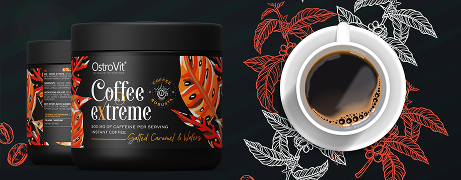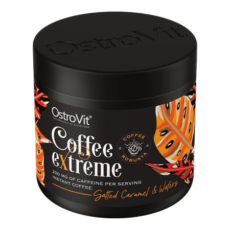 OstroVit Coffee Extreme est un café robusta naturel, qui se distingue par sa teneur accrue en caféine. Il s'agit d'une préparation au délicieux goût de caramel salé et de gaufrettes, créée pour les amateurs de boissons aromatiques qui recherchent une alternative inhabituelle à la classique tasse de petit noir.
