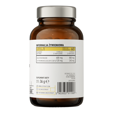 OstroVit Pharma Beef Colostrum est un complément alimentaire de haute qualité qui est une source de colostrum bovin séché contenant 30% d'immunoglobuline G. Il s'agit d'un produit de la gamme d'élite d'OstroVit Pharma, disponible sous forme de gélules faciles à avaler, créé pour les consommateurs conscients qui se soucient de soutenir le travail de l'organisme.