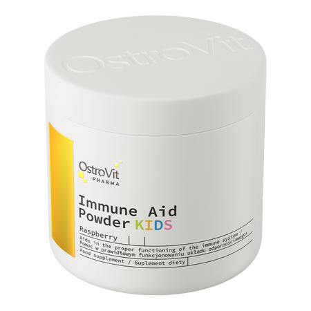 OstroVit Pharma Immune Aid Kids est un complément alimentaire complet qui fournit une source de vitamines, de minéraux, d'extraits de plantes ou de prébiotiques. Il s'agit d'un produit de la ligne d'élite OstroVit Pharma, créée à l'intention des consommateurs les plus jeunes. Il s'agit d'un produit au délicieux goût de framboise, disponible sous forme de poudre pratique.