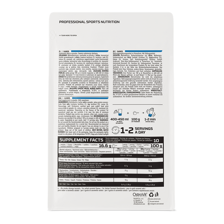 OstroVit Gainer est un supplément de glucides et de protéines de haute qualité. Il s'agit d'une formule disponible sous forme de poudre facile à utiliser, en sept saveurs différentes. Il s'agit d'un supplément conçu pour les athlètes et les personnes physiquement actives qui souhaitent compléter les calories et les macronutriments précieux de leur régime alimentaire quotidien.