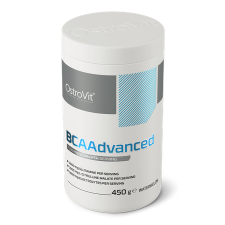OstroVit BCAAdvanced est un complément alimentaire de haute qualité qui constitue une source d'acides aminés BCAA, de L-glutamine, de L-citrulline, de vitamine B6 et d'électrolytes précieux (potassium, magnésium, sodium et chlorure). Il s'agit d'une formule sans sucre, disponible sous forme de poudre, en quatre saveurs différentes. C'est un produit qui sera un excellent complément alimentaire pour les athlètes et les personnes physiquement actives.