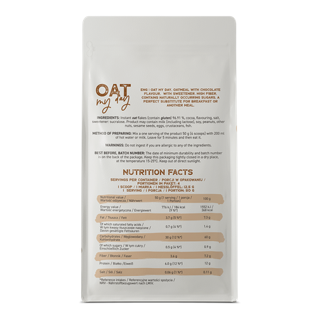 L'Organisation mondiale de la santé (OMS) recommande que le régime alimentaire fournisse à l'organisme des minéraux. 25 g de fibres alimentaires. Comment assurer un approvisionnement suffisant en cet ingrédient précieux ?? Commencer la journée avec des flocons d'avoine nutritifs comme OstroVit Oat My Day peut être une bonne solution.