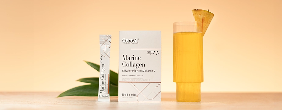 Collagène est l'une des principales protéines de l'organisme, un polymère naturel et un composant important de la substance intercellulaire des organismes animaux. Étant donné que le niveau de collagène dans l'organisme diminue avec l'âge en raison des processus naturels de vieillissement, il est utile d'approvisionner l'organisme en collagène à partir de l'extérieur collagène se produit m.en. dans les os ou les tendons des animaux, et est également disponible sous forme de compléments alimentaires. Le collagène marin utilisé dans OstroVit Marine Collagen + Hyaluronic Acid + Vitamin C Box est une source de peptides de collagène de poisson hydrolysés, dont la structure ressemble à celle du collagène humain. Cela permet à la substance d'être très bien absorbée par le corps humain.