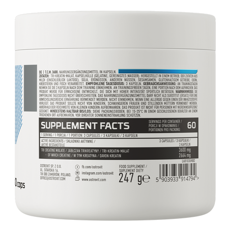OstroVit Creatine Malate Capsules 3600 mg - malate de créatine de haute qualité