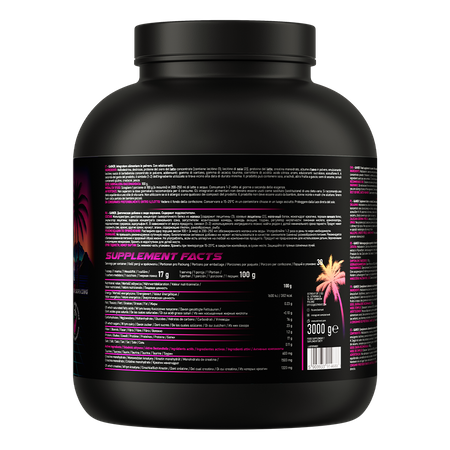 OstroVit Gainer Miami Vibes est un complément alimentaire qui fournit à l'organisme jusqu'à 76 g de glucides et 17 g de protéines par portion, ce qui contribue à la croissance musculaire et au maintien de la masse musculaire, ainsi qu'au maintien d'une ossature saine. Il s'agit d'une formule qui contient également des ingrédients actifs précieux - la taurine et la créatine monohydrate sont présentes dans le produit.