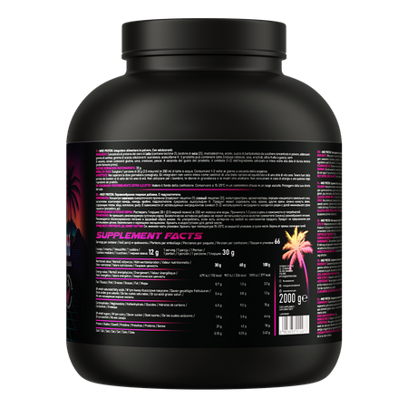 OstroVit Whey Protein est un complément alimentaire qui contient du concentré de protéines de lactosérum (WPC) et constitue donc une source précieuse de protéines. Il s'agit d'une formule au goût unique Miami Vibes, disponible sous forme de poudre, qui a été développée pour les athlètes et les personnes ayant un besoin accru de protéines.