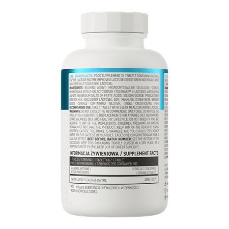 OstroVit Stabilolactic est un complément alimentaire de haute qualité qui fournit une source de l'enzyme lactase. Disponible sous forme de comprimés faciles à avaler, ce produit est conçu pour les personnes qui souhaitent soutenir le travail quotidien de l'organisme.