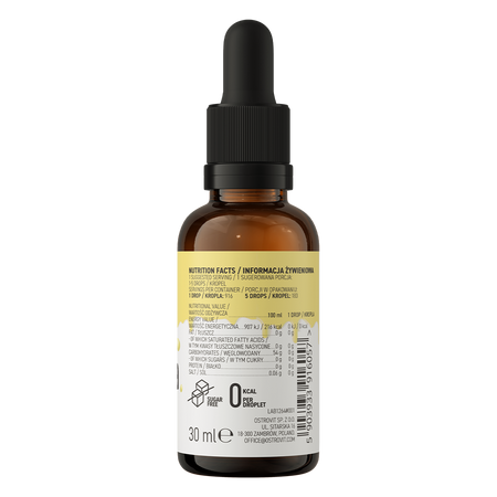 Les gouttes sucrantes à la vanille sont un arôme alimentaire unique sans sucre ajouté. Il s'agit d'un élément extrêmement efficace d'un menu sain, conçu pour les personnes qui souhaitent ajouter de la variété à leur alimentation quotidienne. Il s'agit d'un produit qui permet de transformer des boissons et des plats connus en créations culinaires savoureuses. Les gouttes sucrantes se distinguent par leur polyvalence et confèrent aux boissons une douce saveur de vanille. Idéal pour aromatiser le café ou l'eau, donner aux liquides un arôme unique et rehausser le goût des flocons d'avoine, des crêpes ou des smoothies. Oubliez donc les boissons ennuyeuses et monotones. Choisissez l'arôme alimentaire OstroVit en gouttes et profitez de la plénitude d'un goût exceptionnel!