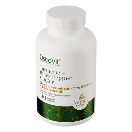OstroVit Curcumine + Poivre noir + Gingembre VEGE est un complément alimentaire qui apporte une source de trois extraits de plantes. Un produit disponible sous forme de gélules faciles à avaler, conçu pour les personnes qui souhaitent compléter leur alimentation quotidienne avec des composés précieux.