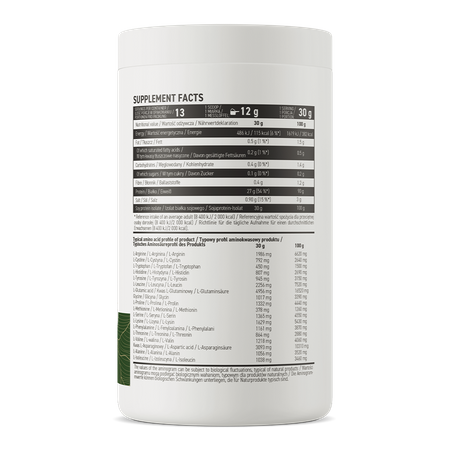 | Profil d'acides aminés typique | Par portion | Pour 100 g |