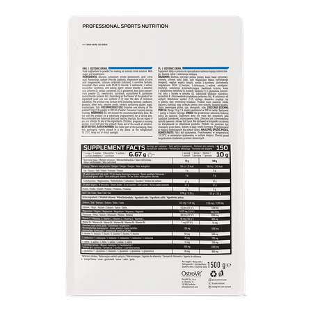 OstroVit Isotonik Drink est un complément alimentaire destiné à la préparation d'une solution de boisson isotonique, qui contient des substances et des électrolytes précieux tels que le m.en. BCAA, magnésium, potassium ou L-glutamine. Il est disponible sous forme de poudre pratique, au goût rafraîchissant d'orange juteuse. Il s'agit d'un produit conçu pour les athlètes et les personnes physiquement actives qui souhaitent compléter leur alimentation avec des ingrédients de qualité.