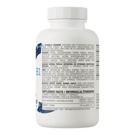 OstroVit Vitamine B1 Thiamine est un complément alimentaire de haute qualité qui fournit une source de thiamine. Il est disponible sous forme de gélules faciles à avaler, conçues pour les personnes qui souhaitent compléter leur alimentation quotidienne avec ce précieux micronutriment.