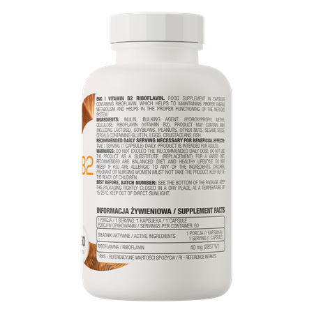 - Source de vitamine B2 - une portion du complément alimentaire apporte 40 mg de riboflavine à l'organisme.