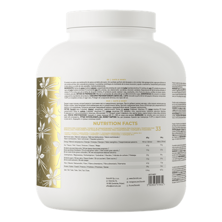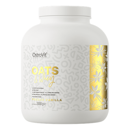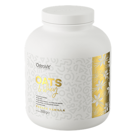 OstroVit OATS & Whey est un produit de haute qualité qui combine l'avoine et les protéines de lactosérum. Ce mélange nutritif est disponible sous forme de poudre au délicieux goût de vanille française et constitue une riche source de fibres, d'hydrates de carbone et de protéines, sans sucre ajouté. Il s'agit d'un substitut inhabituel au petit-déjeuner ou à un autre repas, qui convient parfaitement à ceux qui souhaitent compléter leur alimentation quotidienne avec des produits sains et nutritifs.