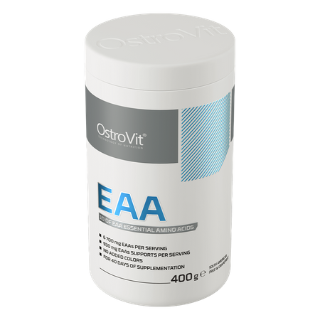 OstroVit EAA est un complément alimentaire de haute qualité qui contient des acides aminés essentiels, ainsi que de la L-glutamine, de la L-tyrosine et de la L-cystéine. Il s'agit d'une préparation au goût délicieux de pamplemousse rafraîchissant, disponible sous forme de poudre pratique. Il s'agit d'un produit conçu pour les athlètes et les personnes qui souhaitent compléter leur alimentation quotidienne avec des composés précieux.
