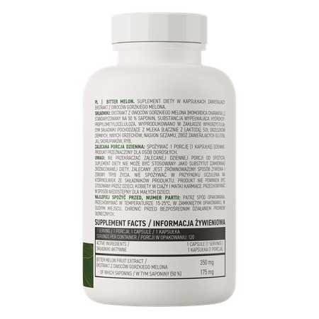 - Source de l'extrait précieux - une portion du complément alimentaire apporte à l'organisme 350 mg d'extrait de melon amer, standardisé à 50 % de saponines.
